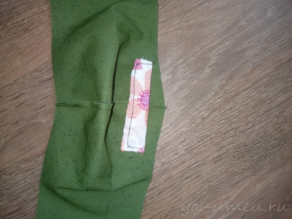 Простроченную изнаночную деталь сшиваем по длинным краям с лицевой частью: